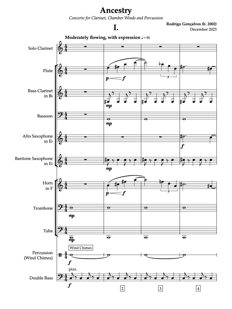 The concerto acts as a bridge between past and future. Gonçalves explores the weight of history, moving through moments of tension and instrospection. Ancestry stands as a monument to the strength of human spirit, inviting the audience and musicians to embrace the wisdom of the past as a foundation for a better world.