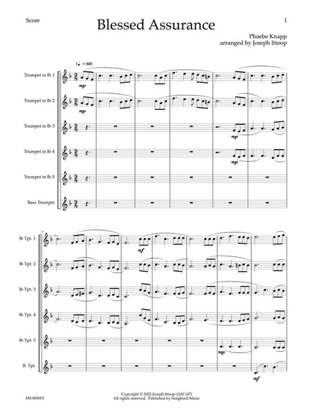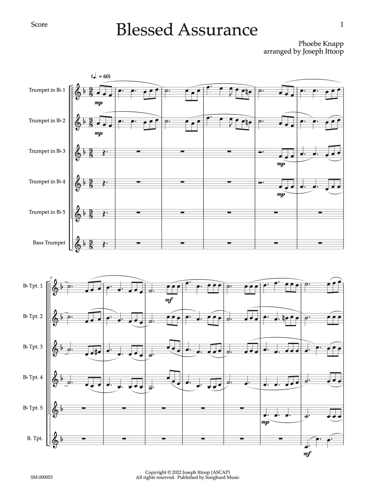 Phoebe Knapp composed the classic hymn Blessed Assurance in 1873. Joseph Ittoop has arranged the hymn for a Trumpet Sextet, consisting of five B-Flat trumpets and one Bass trumpet. This arrangement was featured in the 2022 Call for Scores recordings, which were hosted by the Trumpeter's Multi-Track Competition. Ittoop's interpretation is a beautiful and unique take on the beloved hymn.