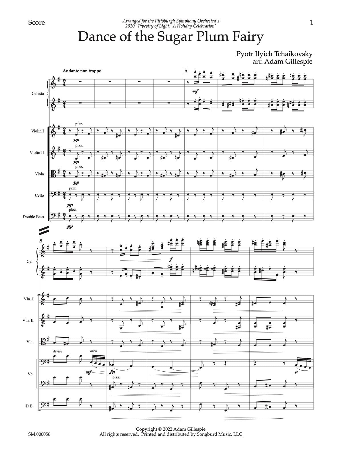 This arrangement of Dance of the Sugar Plum Fairy by Adam Gillespie, was written for the Pittsburgh symphony orchestra as part of their 2020 "Tapestry of Light: A Holiday Celebration" concert.