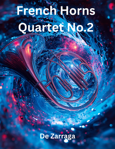 French Horn Quartet No. 2 by De Zárraga builds upon the expressive foundation of the first quartet while exploring a broader palette of color, texture, and rhythmic complexity. The work unfolds with a heightened sense of contrast, moving between bold, resonant fanfares and more introspective, lyrical passages that highlight the horn’s warm, vocal quality. Intricate interplay among the four parts creates a dynamic conversation, with shifting roles that balance unity and individuality. De Zárraga’s writing emphasizes precision, blend, and expressive nuance, drawing out both the heroic and contemplative character of the instrument. The quartet ultimately forms a cohesive and compelling musical narrative, rich in atmosphere and expressive depth.