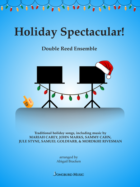 Holiday Spectacular! is an arrangement of six holiday songs for double reed ensemble. The medley includes Carol of the Bells, The Dreidel Song, Rudolph the Red-Nosed Reindeer, Let it Snow, Hannukah, O Hannukah, and All I Want for Christmas is You. Along with parts for four oboes and two English horns, the piece also includes optional percussion (tambourine and sleigh bells) to add to the character of select numbers. This arrangement is suitable for advanced high school students and collegiate oboe studios alike.