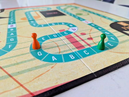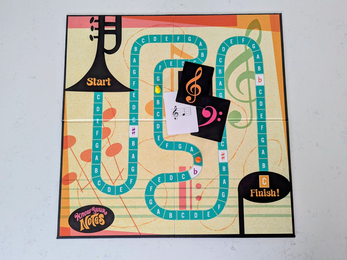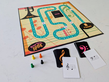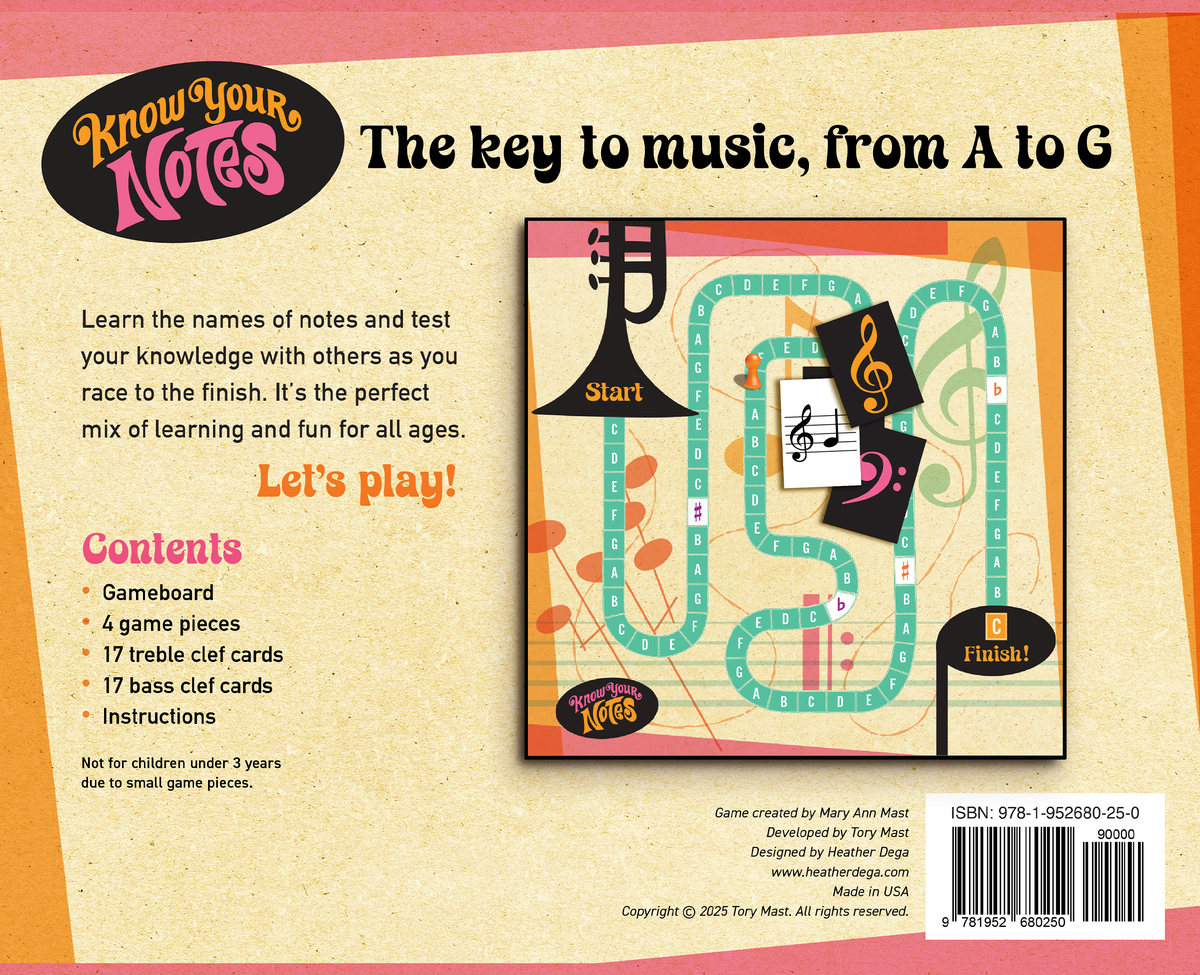 Scale up your music skills! Know Your Notes is a fun, easy-to-play board game that supports music education by helping students — or anyone interested in learning music — master the names of notes. Use treble clef cards, bass clef cards, or both, to match the notes on a staff to corresponding spaces on the board. Test your knowledge with others as you race to the finish. Wild cards send players forward or backward, adding to the game’s excitement and unpredictability. It’s a great way to build a strong foundation in music reading, an essential part of learning to play an instrument.