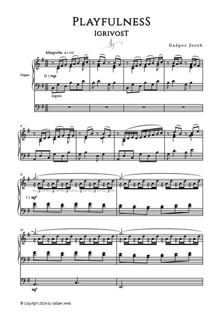 Join the musical journey with my playful and lively piece that will captivate you from its very title! As a prelude and fugue, this organ composition offers a cheerful and spirited character, perfect for creating colourful symphonic registrations. Experience a musical adventure that will fill you with energy and joy.