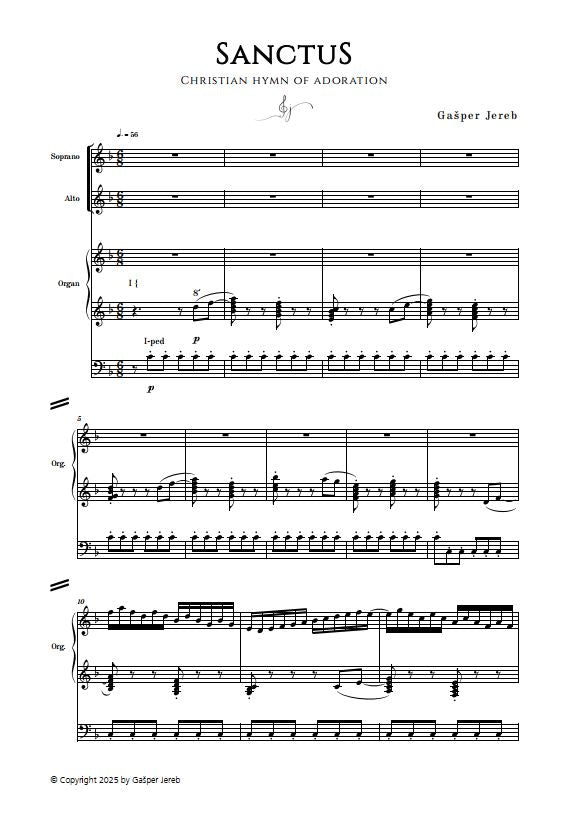 Sanctus, sanctus, sanctus! The piece Sanctus for Women's Choir and Organ takes us into a mystical atmosphere of worship. With the angelically pure voices of the women's choir and the gentle support of the organ, this composition creates an authentic ambience of holiness. Experience a spiritual journey through sound.