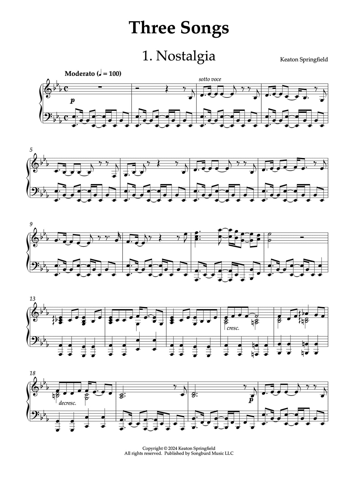 Three Songs for piano is a small collection of personal musical statements. Initially